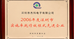 新春伊始,喜讯频传,杰科喜获“深圳市实施卓越绩效模式先进企业和卓越质量领导者”两项殊荣! 近日,由深圳市质量协会主办的“2006年度深圳市实施卓越绩效模式先进企业和卓越领导者、杰出质量工作者”的评选活...