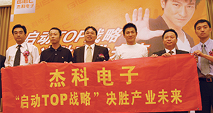 2005年8月8日,杰科电子携巨星刘德华启动TOP战略新闻发布会在北京人民大会堂举行。杰科TOP战略的发布与刘德华的助阵均成为行业亮点。 近几年来,杰科的品牌知名度一路攀升,从2002年的第15名上升到目...